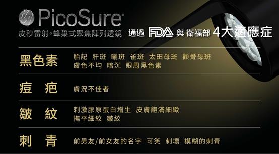▎美國FDA、台灣衛福部核准通過四大適應症之治療:黑色素、痘疤、皺紋、刺青,品質安全有保障。