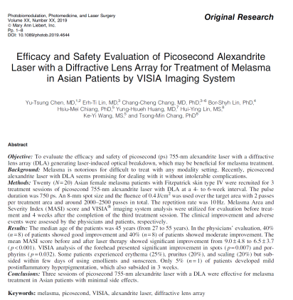 全球唯一使用755nm 蜂巢雷射治療肝斑文獻期刊, 755nm 蜂巢治療效果另創高峰 |