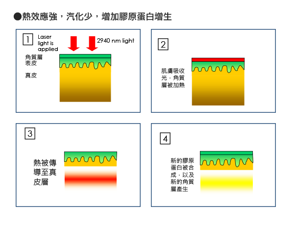 | 第4~6週 | 痂皮脫落,新生肌膚退紅 | 加強保濕及防曬工作。 |